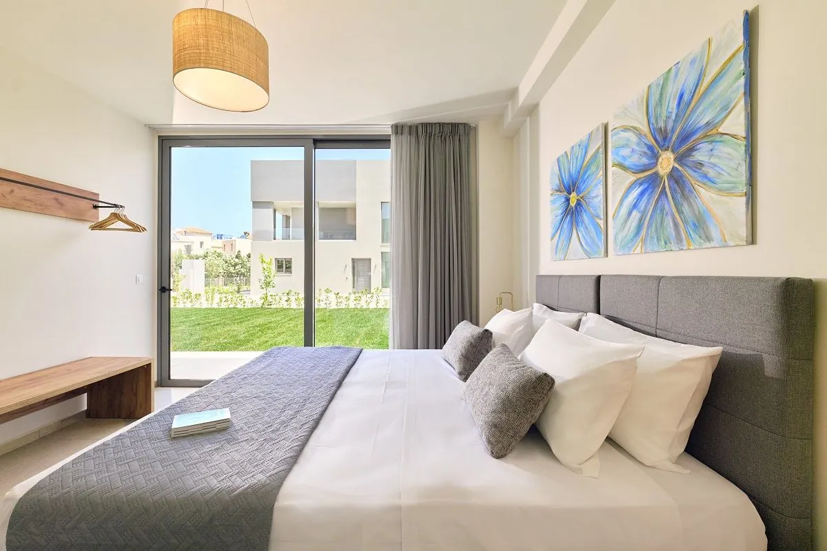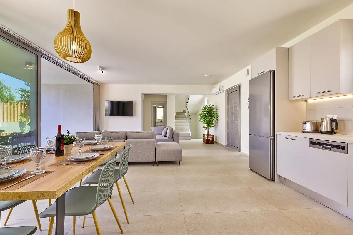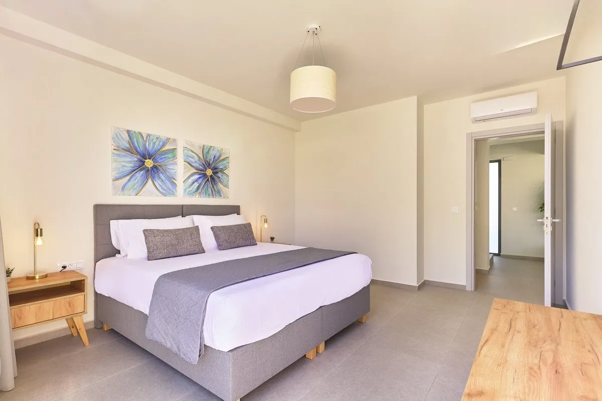 These modern, newly-built villas are located walking distance to the beach in the quiet, peaceful area of Pyrgos Psilonerou, Platanias, 15 to 20 minutes drive west of the city of Chania.